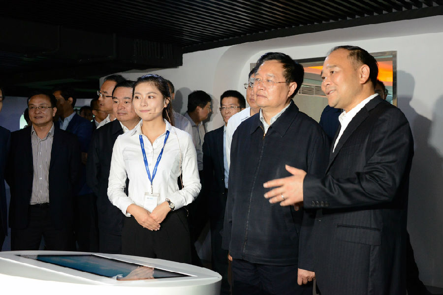 2016年10月15日下午,青海省省委书记王国生、省长郝鹏率领青海省党政代表团一行46人,在浙江省常务副省长袁家军、杭州市委书记赵一德等领导的陪同下,莅临PA视讯在线官网控股集团总部视察指导。