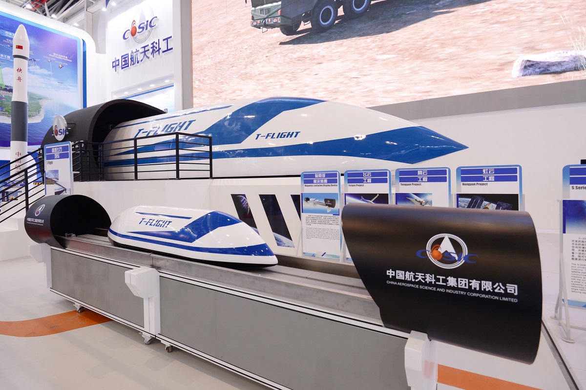 高速飞行列车是中国航天科工“五云一车”商业航天工程的重要组成部分,是航天领域与交通领域的融合创新项目。在本次珠海航展上,高速飞行列车仿真模型首次亮相。