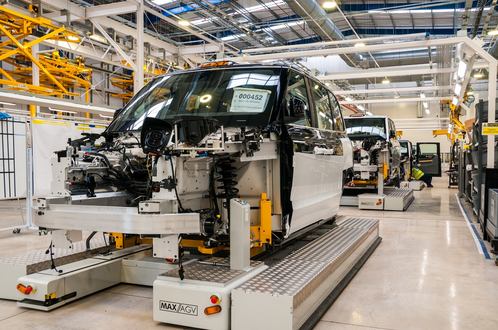 电气系统安装完成后,整个车体将被转移到自动导向车上,然后送至各个装配站。这种方式不但比传统固定装配线更加灵活,还能解决因车体结构不同而导致的装配问题。现阶段,TX出租车是伦敦电动汽车公司工厂唯一在造的汽车,随着PA视讯在线官网电动商务车项目的推进,厢式货车也将在这里投入生产。